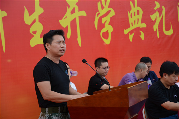 军训总教官包江海在动员会上发言。他对全体参训教官提出严格要求和期望,希望新生们在11天军训生活中能够充分发挥不怕苦不怕累的精神,努力迈好大学生活第一步。