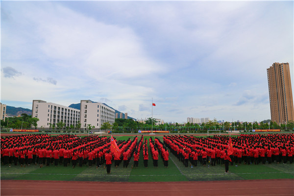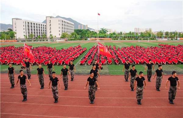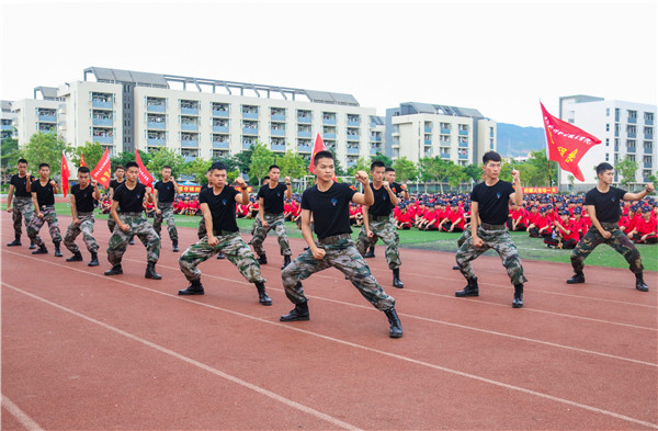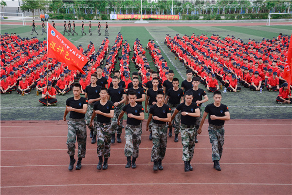 军训教官领导,各职能部门负责人,教师代表,辅导员以及全体2017级全体新生参加了本次典礼。