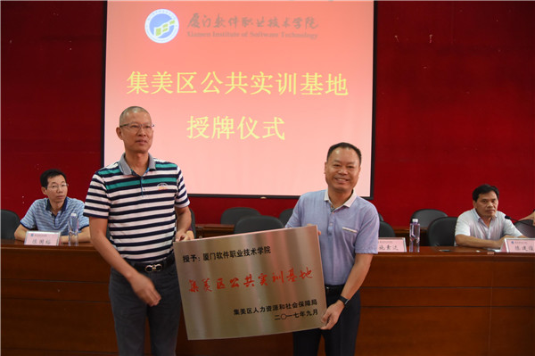 据悉,“集美区公共实训基地”是集美区政府为做强做大集美区产业建设,贯彻践行“集美区金蓝领工程”的重要项目之一,是集美十三五规划建设的一项重大举措。作为厦门信息化产业人才培养的本土专业院校,学院一直贴近产业、贴近属地,加大人才培养的转型力度,推动教学改革、工学结合、校企合作,主动对接社会,对接产业,开展各类的人才培训,培训服务进社区、进企业,创造条件为政校企合作提供一个交流、合作的平台,为推动我市及属地产业的快速发展培养更多、更优秀的人才。