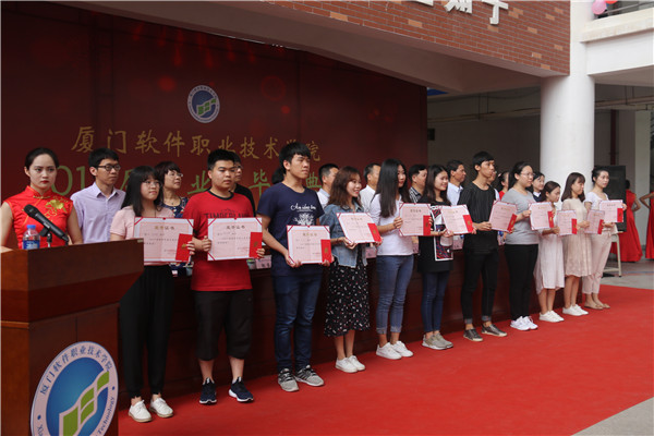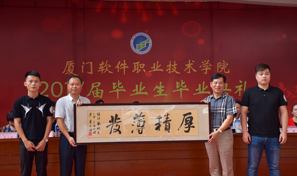 党委钟远南书记代表学院宣读了优秀毕业生表彰决定,领导、系部负责人为优秀毕业生颁奖;领导分批次为毕业生代表颁发毕业证书并合影留念。最后,设计艺术系学生向学院赠送了纪念品。