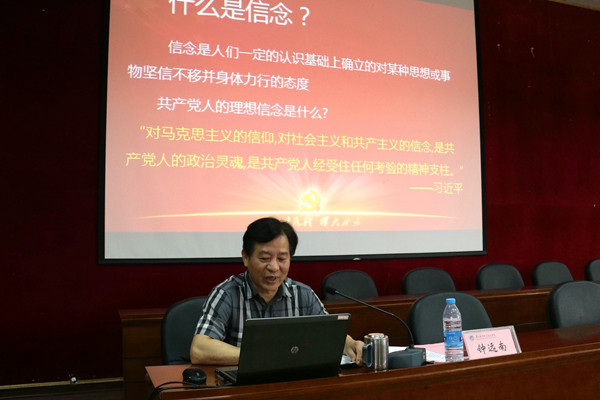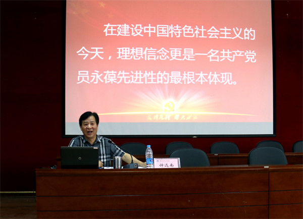 钟远南书记通过大量历史图片和完整严密的逻辑阐述,暨生动体现了在革命战争时期无数革命先烈抛头颅,洒热血为寻求革命道路献出了保贵的生命,又讲清楚了在建设中国特色社会主义的今天,理想信念更是一名共产党员永葆先进性的最根本体现。